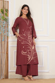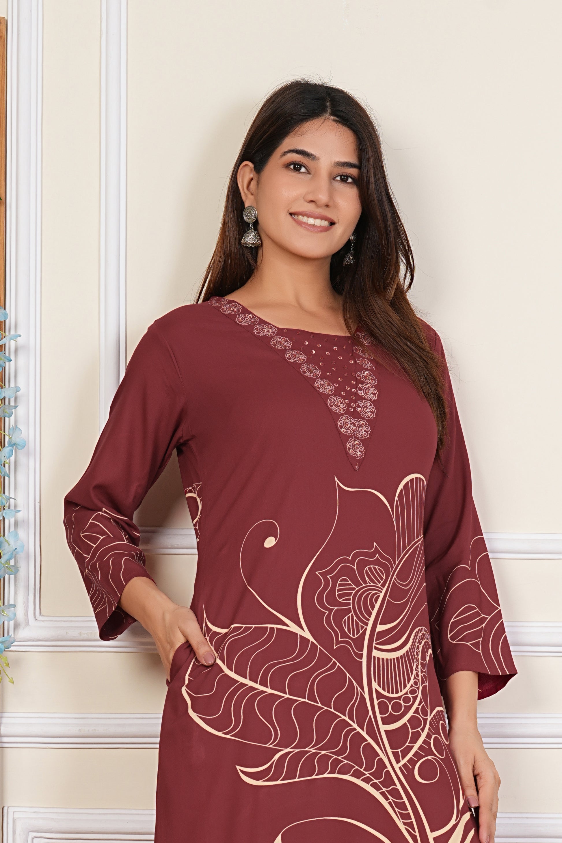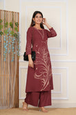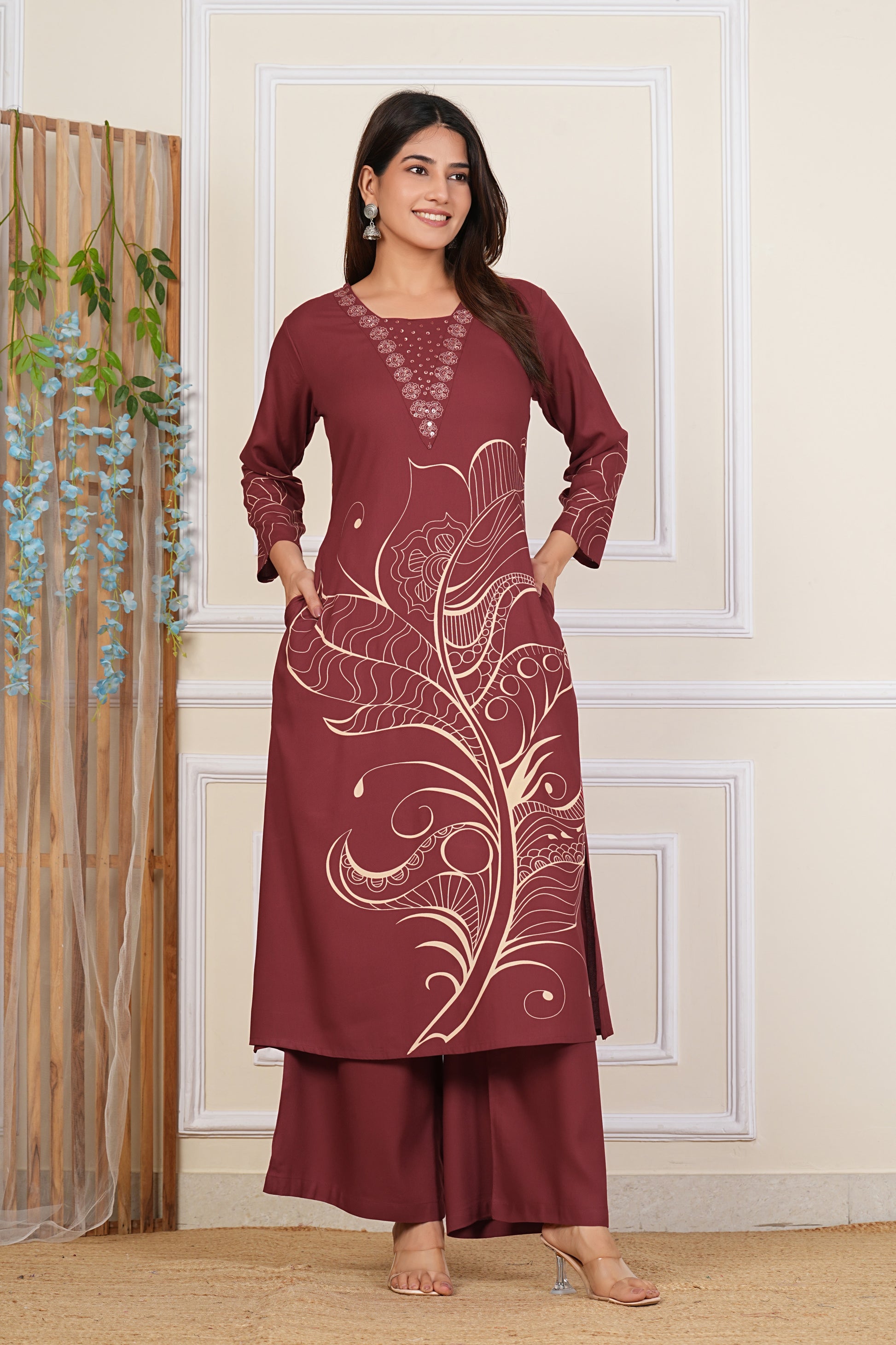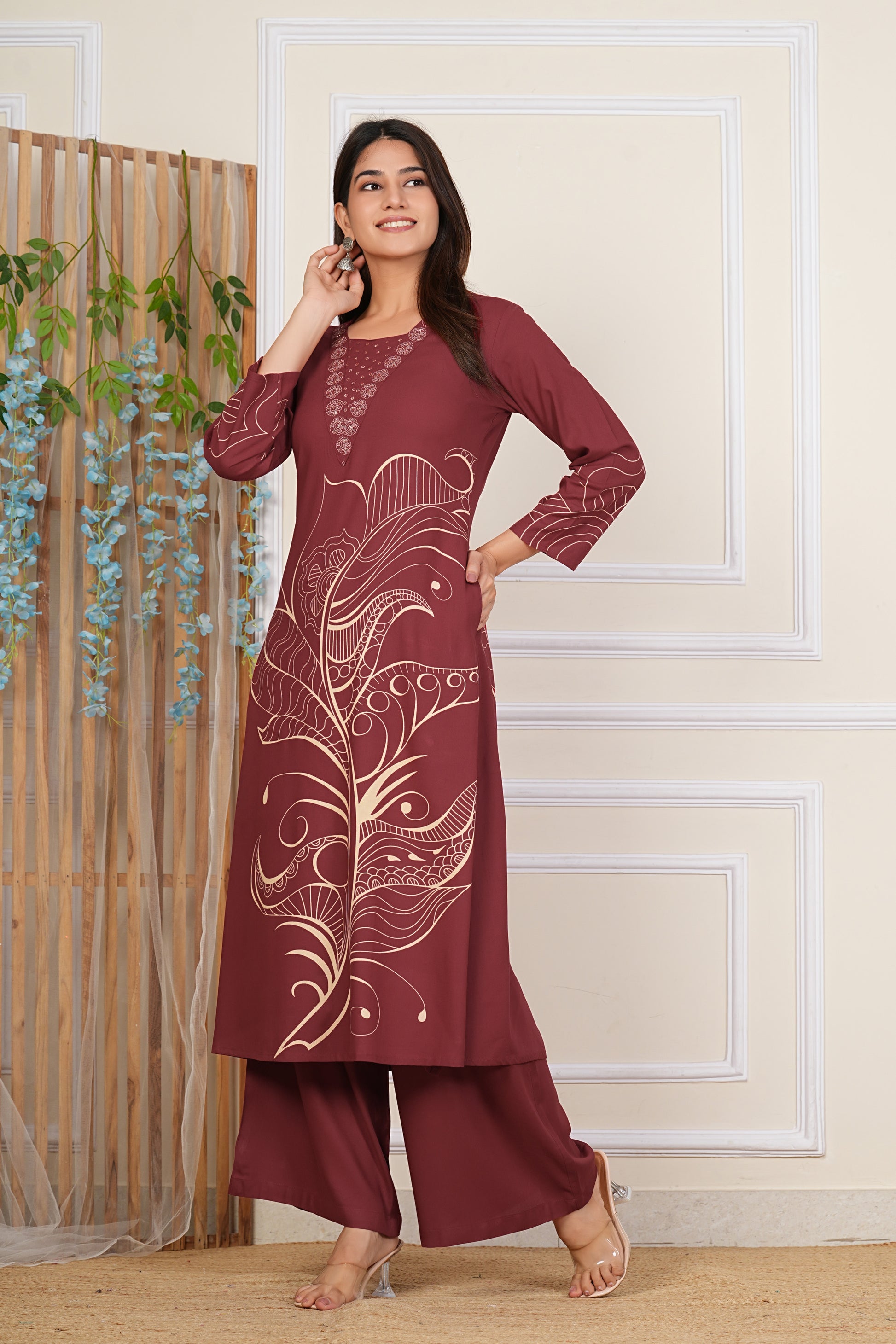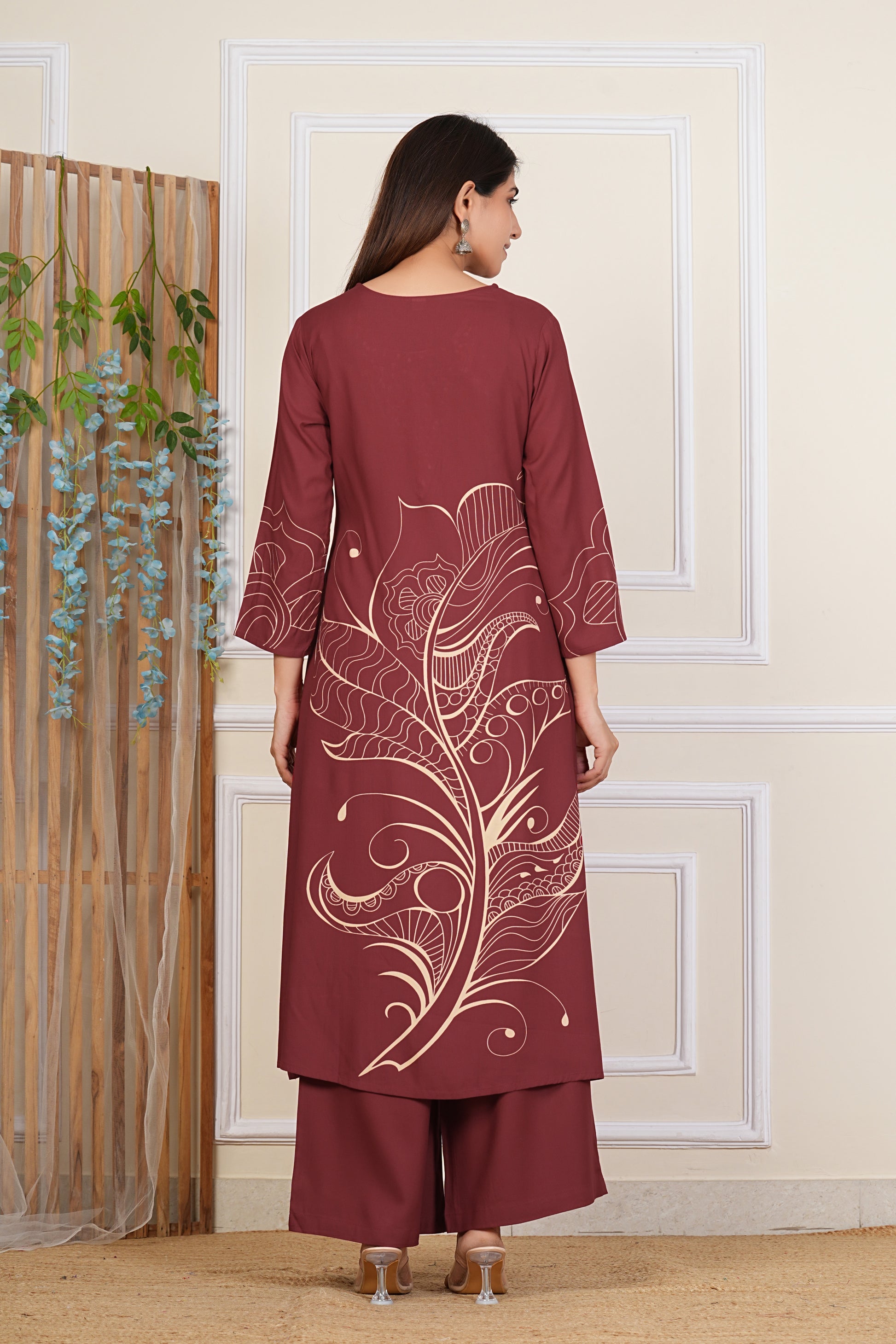 Mohitwala Women's Rust Maroon Rayon Kurta & Palazzo Set